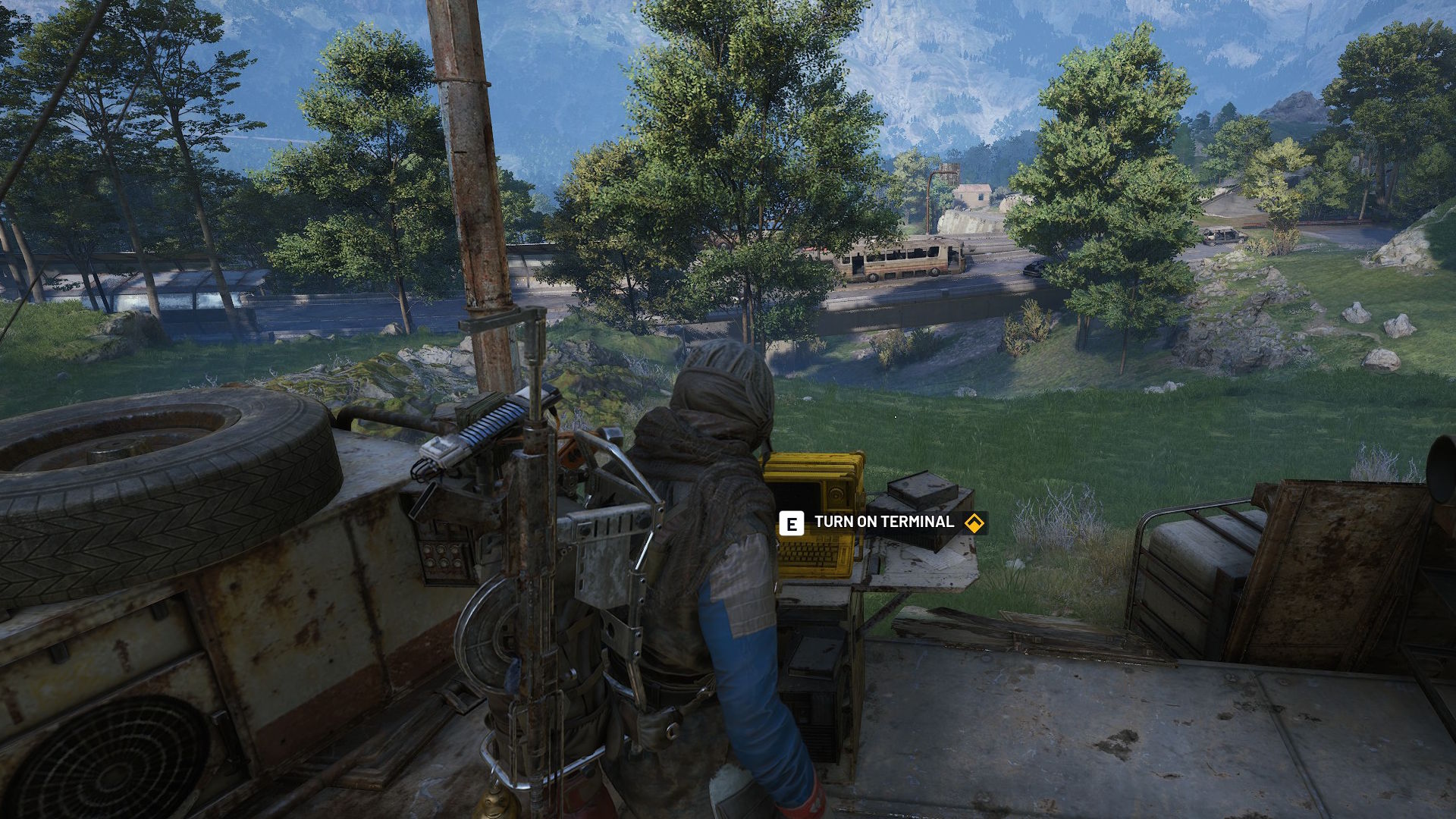 - Enable the comms terminal near the Olive Grove