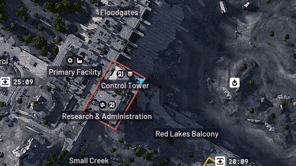 - Locate the Flood Access Tunnel under the Red Lake Balcony